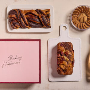 המארז כולל: 2 מארזי עוגיות, בריוש/פרסבורגר לבחירה, מארז מאפים מתוקים סוג אחד- 15 יח' ובראוניז/ קייקס לבחירה.