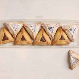 מארז אוזני המן מצופות 7 יח' – 3 מרציפן פירות יער , 4 גבינה לוטוס